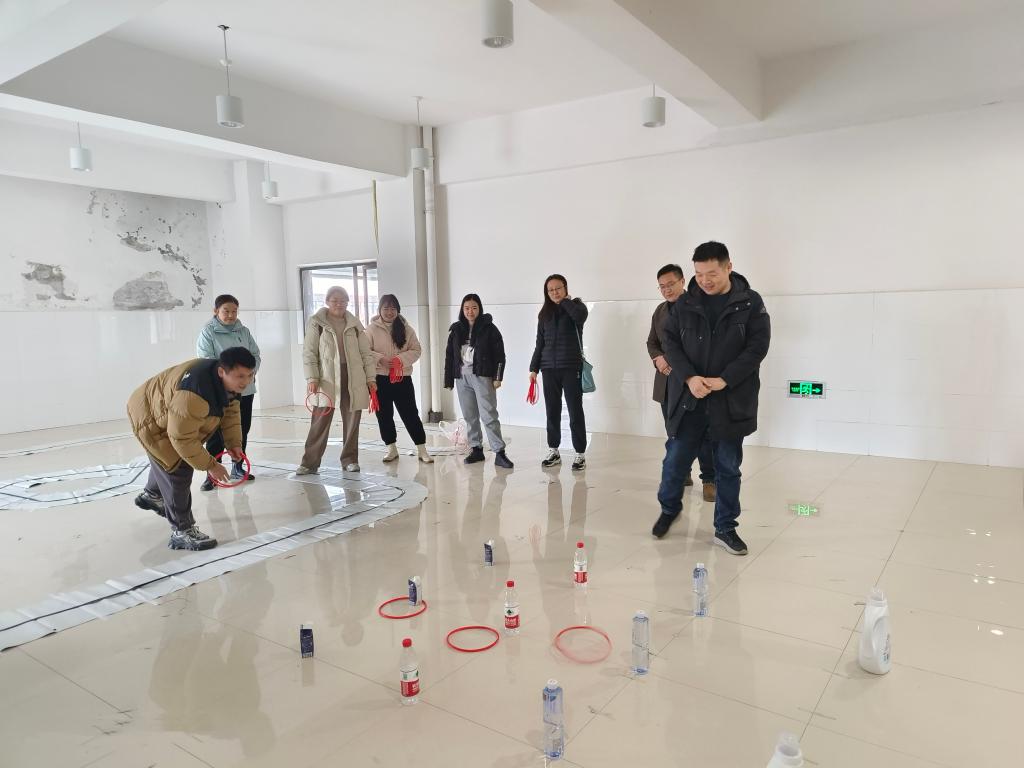 活动开始前,主持人首先介绍了游戏规则,每人5个圈,老师们站在指定的位置,根据套中的圈数可获得相应的奖品。活动开始后老师们个个兴致昂扬,使出浑身解数,套圈方法层出不穷。“稳住!瞄准再出手!”,“差一点,再来!”平日里严肃认真的老师们化身“游戏达人”,有的屏息凝神专注投掷,有的调整角度尝试“抛物线战术”,还有的因套圈“擦肩而过”引发全场善意的笑声。现场气氛热烈,大家纷纷交流套圈技巧,互相加油打气,分享收获的喜悦,周围不断爆发出掌声和喝彩声。