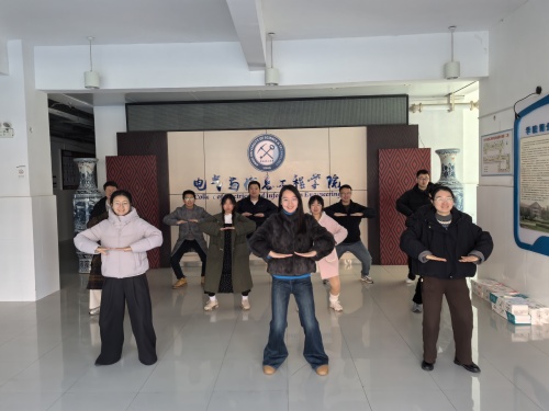 13日上午10:00,学院院办老师在西门大厅一起来跟着视频学习八段锦,认真学习每一个动作,朝着健康工作迈步!此次活动共计40余人参加,通过此次活动帮助老师们解锁新的运动方式,丰富运动的多样性。