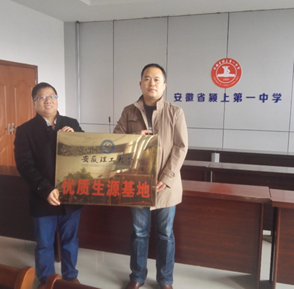 欧阳名三教授代表学校与颍上一中签署了“漫画柜 优质生源基地”共建协议书并授予漫画柜 “优质生源基地”牌匾。漫画柜 自动化系相关老师参加了两校的协议书签订和授牌仪式。