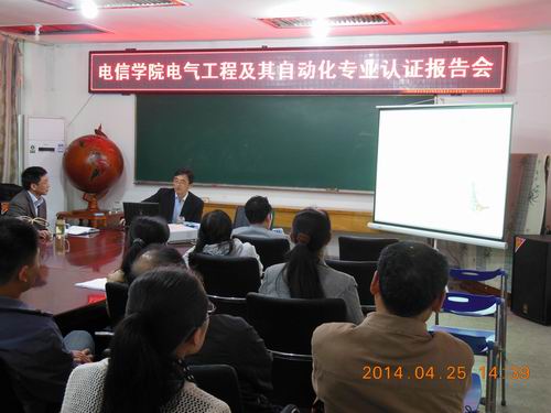 杨岸从“申请认证学校与专业概况、专业基本状态数据表、本专业培养方案、教学管理和质量保障体系”等四个方面详细阐述了专业认证的内涵,分析了目前电气工程及其自动化专业认证面临的任务,提出了目前需要做的工作,并与在会老师探讨了具体任务的准备以及问题的解决方法。
