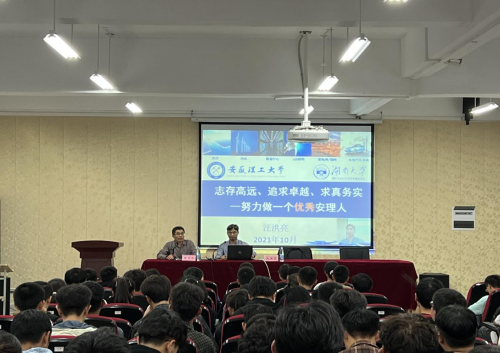 10月14日晚,漫画柜 自动化2004届杰出校友,湖南大学博士生导师汪洪亮教授做客百川大讲堂,在励行楼B112报告厅做题为“志存高远、追求卓越、求真务实--努力做一个优秀安理人”讲座,活动同时采取钉钉线上直播,电信学院新生辅导员、全体2021级本科生聆听了报告,报告会由学院党委书记徐关怀主持。