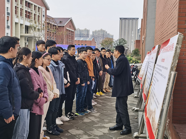 夏邦权向参加图片展师生宣讲十九届五中全会精神(摄影:魏建徽)