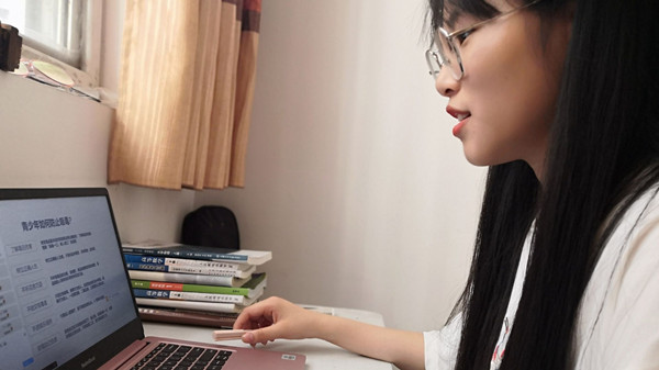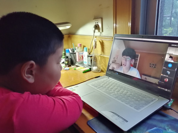 芜湖市北塘小学顾家誉同学收看青少年拒毒防毒宣传教育讲座(摄影:院学生会提供)