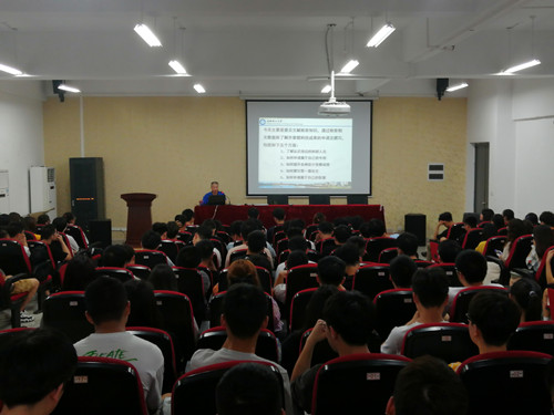 唐超礼阐明了科技论文写作对于培养提升学生自主学习能力、创新实践能力和科研研究能力的重要意义,激发学生聆听兴趣;他运用知网等相关数据库平台,现场操作演示,向同学们普及文献检索知识,了解并掌握专业相关的或自己感兴趣的科技成果;结合自身科研经验告诉同学们,着重讲解撰写第一篇论文、软件著作权和专利申请书等内容的方法与技巧;通过检索相关案例的学习让大家明白撰写申请属于自己的科研成果不是同学们想的那么难和神秘,鼓励同学们踏实学、勤思考、认真干,在实践中探寻真知。