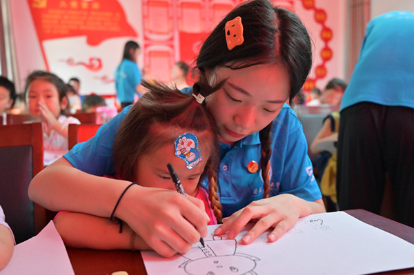 志愿者们秉持以美育人教育理念,静心设计美育教学方案,打造音乐、手工、剪纸、绘画、书法等美育课程体系,心贴心沟通,手把手教学,教学生识乐谱、搭配色彩、临摹书画,传授基本的音乐、绘画等专业知识,在欣赏美、追求美的过程中让孩子们精神愉悦和情操陶冶,把“美”的种子埋进孩子们心田,培养学生的审美情趣,提高他们的生活情趣。