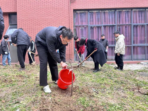 随后,师生们纷纷拿起铁锹,投入到植树实践中。从松土挖坑、到栽苗固土、再到浇水养护,每一个环节都一丝不苟。在劳动过程中,同学们不仅学会了植树造林的基本技能,更深刻体会到了团结协作和劳动创造美好的真谛。