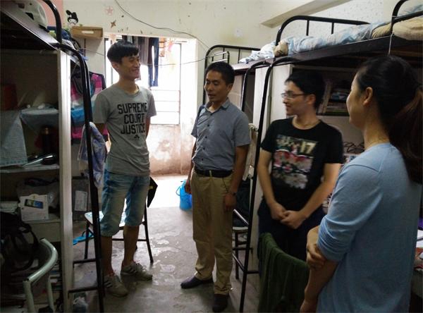 巡查组对学院2013级在高层公寓的全部学生宿舍进行逐一排查,重点检查党员宿舍、党员床铺的安全卫生状况。徐关怀认真查看宿舍用电情况、宿舍物品的摆放以及卫生情况,宿舍整体状况,特别是党员宿舍和党员床铺的安全卫生状况良好,党员同学在公寓起到了模范带头作用。徐关怀叮嘱同学们要牢固树立安全意识,做到安全规范用电、宿舍无人时务必锁好门窗,以防意外发生;对少数宿舍卫生状况欠佳的现象,要求同学们及时整改,积极营造和保持温馨整洁的住宿环境。在宿舍排查走访过程中,巡查组一行还从生活作息到考研复习,从锻炼身体到关注健康,从毕业规划到面试求职,从宿舍卫生到安全防范,和同学们进行了详细的交流。