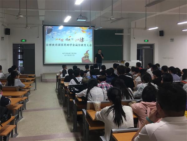 5月17日晚,学院在天工楼101教室召开了以“讲诚信 懂规矩 守纪律”为主题的科学合理使用国家奖助学金诚信教育大会,学院2016级全体奖助学金获得者和各班级学生干部参加。
