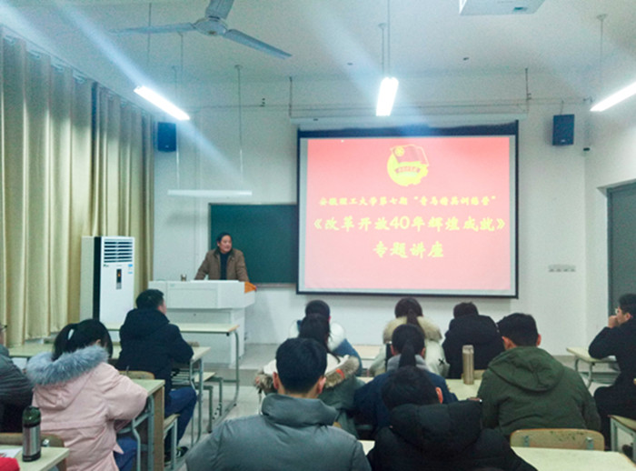 学员们先后聆听了校党委组织部部长娄志勇部长讲授的《改革开放40年辉煌成就》、马克思主义学院院长孙功教授讲授的《中国共产党的光辉历程》专题讲座,开展了“共青团本科生分层分类一体化思想引领工作路径”专题研讨,进行了丰富多彩的户外素质拓展,组织集中观看《榜样3》专题教育活动,赴寿县楚文化博物馆等参观学习。