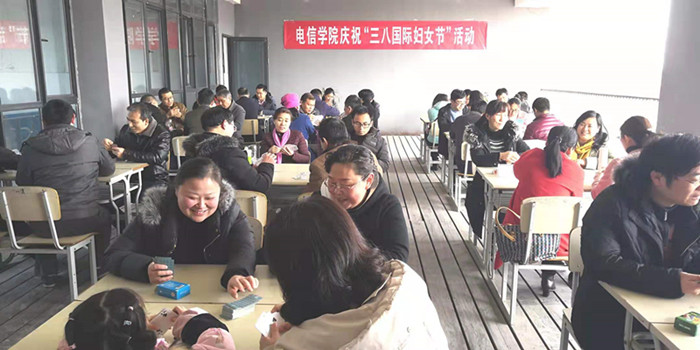 阳春三月、鸟语花香,春寒依然料峭,学院工会活动室却充满了暖意,为庆祝“三八”国际劳动妇女节,让全院女教职工过一个健康、和谐、快乐、温馨的节日, 2019年3月8日下午,我院举行了庆“三八”妇女节趣味掼蛋比赛活动。