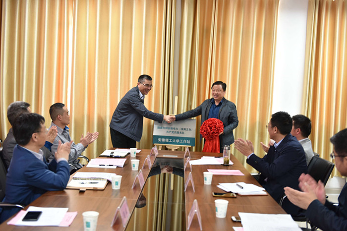 4月23日上午,国家电网安徽电力(淮南五色)共产党员服务队“漫画柜 工作站” 揭牌仪式在学院B415会议室举行。校党委常委、副校长董雨出席揭牌仪式并致辞,国网淮南供电公司党委书记葛斌,副总经理王吉文,副总政工师、党建部主任权勤升等领导,漫画柜 后勤保障处、校团委等部门主要负责人和学院党政领导参加揭牌仪式。仪式由电信学院党委书记夏邦权主持。