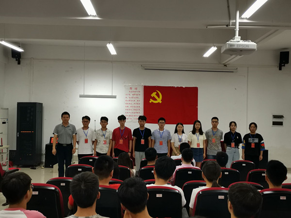 6月21日下午,学院在励行楼B112报告厅举办新发展党员宣誓暨党员宿舍、党员床铺授牌活动。学院党委书记夏邦权、党委副书记张亚参加活动。