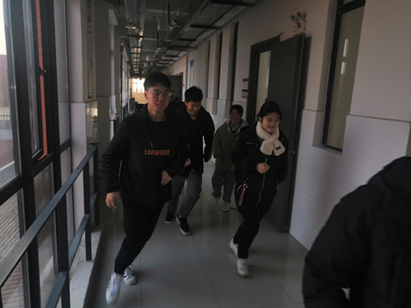 培训会上,徐泽绵结合地震灾害中疏散逃生的典型案例,详细介绍了疏散逃生的要点和注意事项。随后,参加活动的师生按照指定的安全线路,从励行楼五层通过消防楼梯有序地疏散逃生至楼西门外。