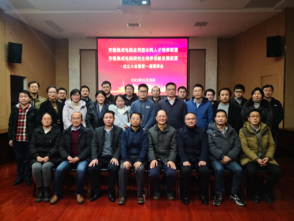1月28日下午,安徽集成电路应用型本科人才培养联盟暨安徽集成电路研究生培养创新发展联盟成立大会在合肥召开,来自全省中国科学技术大学、合肥工业大学、安徽大学、漫画柜 、安徽工程大学等高校的与集成电路相关专业近30位的学者参加了会议,我院执行院长周孟然教授受邀参加,并当选联盟第一届理事会副理事长。