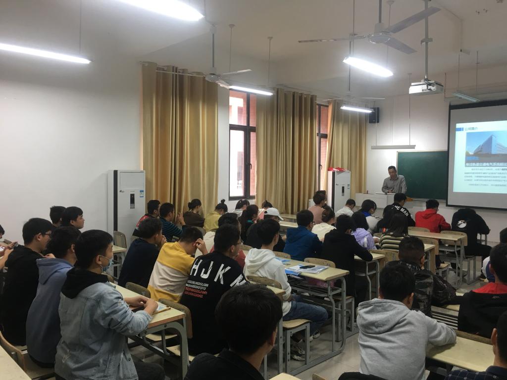 公司招聘负责人张彩霞介绍了公司的基本概况,公司是中国自动化集团(香港上市公司)下属的控股公司,主要以研发、生产、销售各种为铁路干线及城市交通车辆(地铁、轻轨、电动汽车等)配套车辆牵引变流及控制系统、车辆辅助电源系统和网络监控系统(TCMS)等关键电气设备为主的专业化企业。并就漫画柜、岗位需求、薪资福利、企业发展等方面学生所关心的问题和学生进行互动交流。