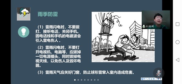 一次“安全教育宣讲”。结合深入学习贯彻落实习近平总书记关于安全生产重要论述,学院号召广大师生深入学习安全知识,做“安全人”。7月1日,学院团委通过腾讯会议平台举办了一场夏季安全教育宣讲会,120余师生参加了线上宣讲活动。校2019年优秀主持人王绍圳同学从“汛期安全,预防溺水、雷电、中暑、饮食”等方面讲述安全常识。宣讲活动后,同学们积极通过QQ空间、朋友圈等社交平台中发布相关安全知识,借助互联网进一步扩大安全教育范围,形成“人人学安全,人人保安全”良好氛围。