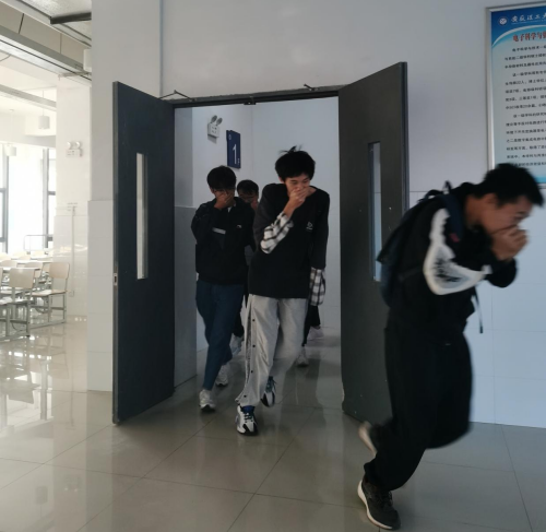举行消防应急疏散演练,沉着冷静安全撤离。以励行楼为基础,组织消防应急疏散演练。警报铃声响起,学生按照先前所学理论知识,弯腰,低头,用湿手帕、衣服等物品捂住口鼻,沿消防通道快速撤离至空旷安全区域,现场六十名师生一分钟内安全疏散完毕。