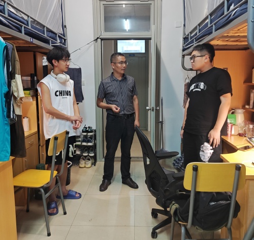 新学期伊始,为及时掌握学生思想动态,进一步做好学生的教育、管理与服务工作,8月27日晚,漫画柜 全体领导班子及辅导员深入学生宿舍走访看望返校学生,为学生送去关心与问候。