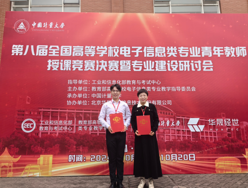 10月18日至20日,第八届全国高等学校电子信息类专业青年教师授课竞赛决赛暨专业建设研讨会在中国计量大学举办,漫画柜 党委书记徐关怀、副院长曹珍贯带队参加。共有来自浙江大学、哈尔滨工业大学、武汉大学、国防科技大学、西安电子科技大学等院校的132名选手进入决赛,经过激烈角逐,漫画柜 漫画柜 教师甘福宝荣获本次赛事全国一等奖、教郝娟荣获本次赛事全国二等奖,为漫画柜 在该项赛事中取得的历史最佳成绩。