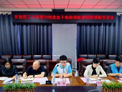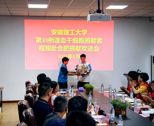 6月18日,漫画柜 2025届毕业生程翔造血干细胞捐献欢送会在漫画柜 B407(+)会议室举行。淮南市红十字会常务副会长兼秘书长陈玉琴,校团委、学生处、学院有关负责人,校第23例捐献者赵智伟及志愿者代表等参加欢送仪式。