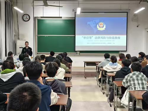 讲座上,王远以“帮信罪法律风险与防范指南”为主题,详细介绍了帮信罪的概念、法律发展进程、基本发展态势及涉案人员特征,重点讲述常见犯罪类型、公众认知误区及立案定罪量刑标准。随后,王远警官系统剖析了五起帮信罪典型案例,深入揭示了电信网络诈骗的作案手法及话术特征。最后,针对校园频发的冒充熟人借款、虚假奖学金通知等骗术,王远警官特别提醒师生牢记“三不”原则:不轻信陌生信息、不随意转账汇款、不泄露个人信息。