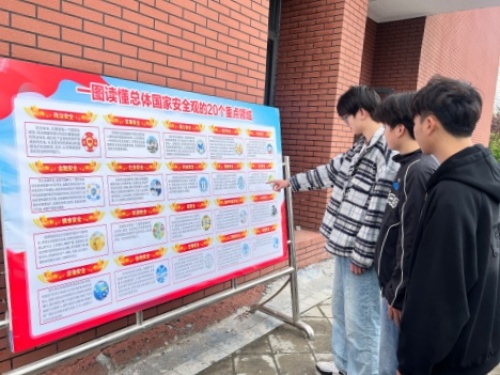 4月初以来,学院组织师生前往新四军纪念林陈列馆、大通万人坑教育馆开展红色研学,铭记历史、缅怀先烈,深化对维护国家安全重要意义的认知;各年级辅导员召开主题班会宣讲总体国家安全观内容,结合相关法律法规讲述公民在维护国家安全中的权利和义务,教育引导青年学生如何以实际行动维护国家安全;学院励行志愿服务队走进安理社区开展宣传活动,将国家安全知识送到群众身边。此外,学院通过海报展板宣传、国家安全法诵读暨宣誓仪式、主题征文、手抄报创作等,宣传普及国家安全知识。