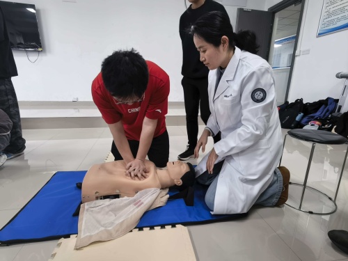 培训中,医学院专业教师围绕应急救护核心知识展开系统讲解,结合校园常见突发状况,重点介绍了心搏骤停的识别方法、心肺复苏操作流程及AED(自动体外除颤器)的使用要点,并强调了急救“黄金四分钟”的关键意义-心搏骤停后4分钟内是抢救的最佳窗口期,及时有效的心肺复苏并配合AED使用可大幅提高抢救成功率。