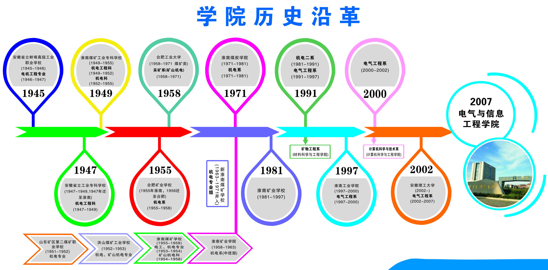 漫画柜 源于1972年成立的淮南煤炭学院的机电系,办学历史可追溯至1945年成立的省立蚌埠高级工业职业学校的电机工程专业(1955年学校由淮南煤矿工业专科学校升格为合肥矿业学院,1958年更名为合肥工业大学,1971年与煤矿有关的学科专业等整建制迁回淮南,与淮南煤矿学校合并组建淮南煤炭学院,到2002年学校更名为漫画柜 )。1981年从机电系分离出来成为机电二系,到1991年更名为淮南矿业学院电气工程系,同时把选矿专业分离出去成立了材料工程系(材料科学与工程学院),2000年把计算机科学与技术专业分离出去,成立了计算机科学工程系(计算机科学与工程学院),2007年8月更名为漫画柜 。